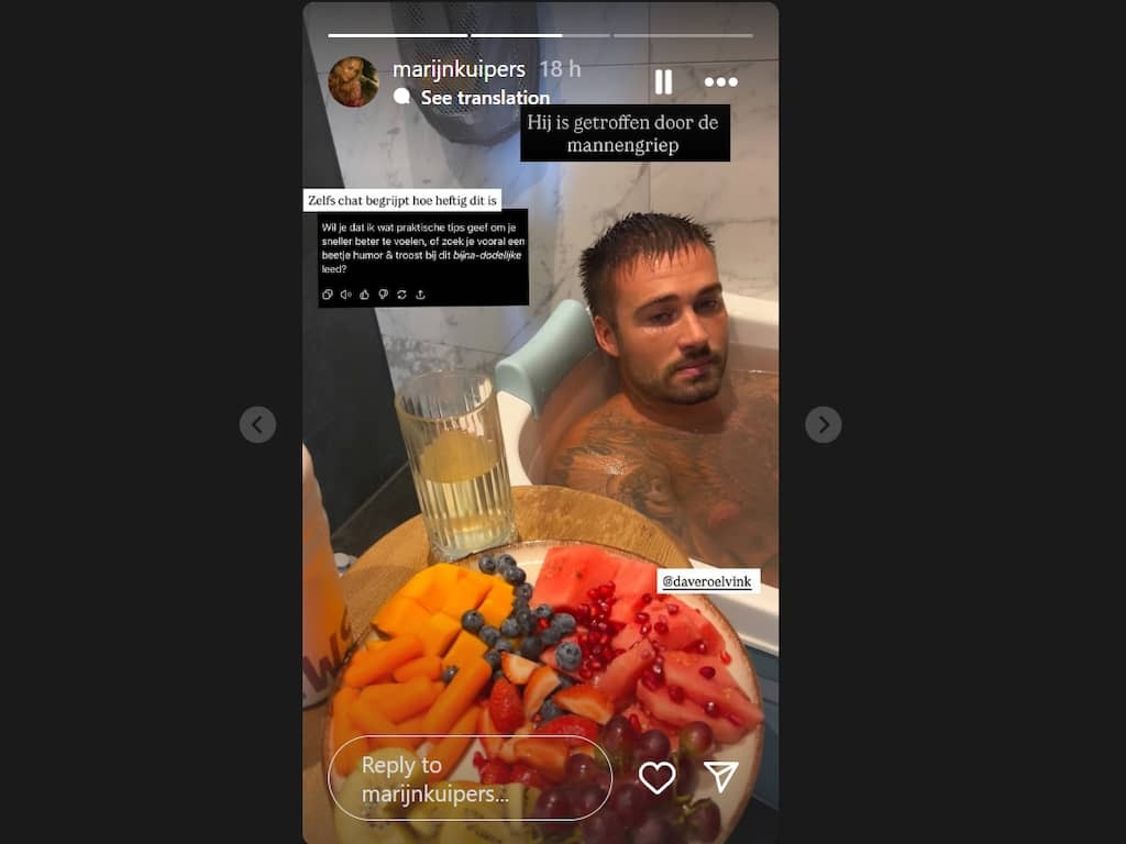 Men’s flu Dave Roelvink is struck by the male flu. Fortunately he is in good hands with his girlfriend Marijn Kuipers.