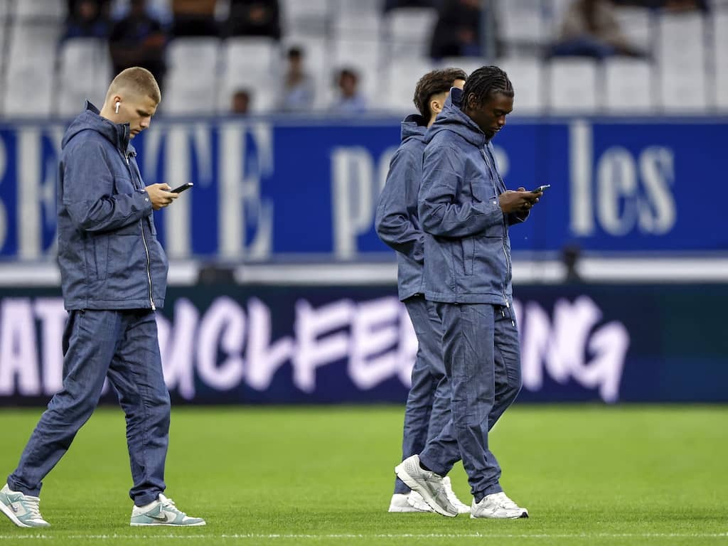 Anton Gaaei, Rayane Bounida and Don-Angelo Konadu Inspect The Field in Marseille, Although The Substitutes Seem More Interested in the Phone. Or will a photo of the tight lawn be tasks?