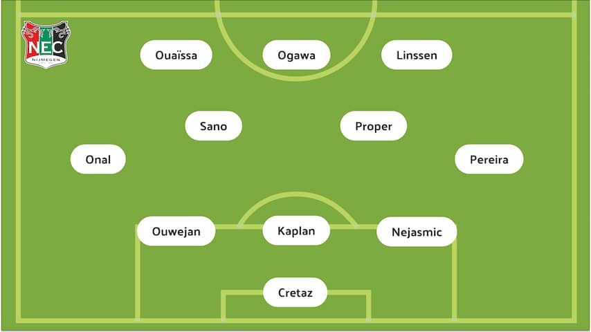 NEC setup! Tjaronn Chery is suspended and is therefore not in the selection. His place is taken over by basic debutant Darko Naasmic, so that Bryan Pereira moves to midfield.
