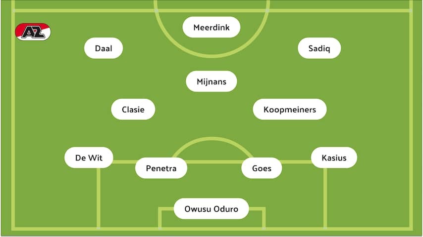 Setup AZ! The Alkmaarders miss Kees Smit, who is injured in his hip. As a result, Peer Koopmeiners once again has a base place.