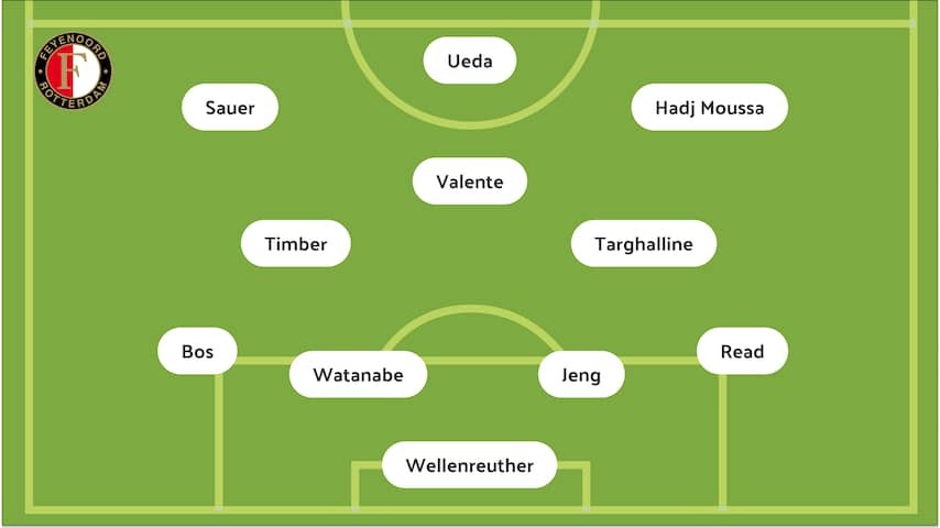 Feyenoord setup! No Sem Steijn with the Rotterdammers. The midfielder is sick. Oussama Targhalline is his replacement in Groningen.