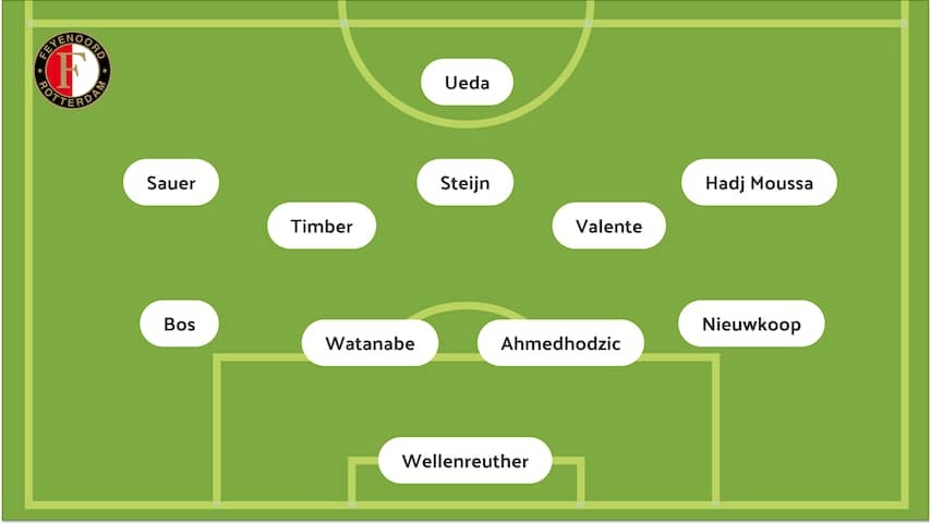 Feyenoord line-up! Robin van Persie Chooses Bart Nieuwkoop as Right Back. Jordan Lotomba is not in the selection. The same applies to hwang in-beom, who is replaced by Luciano Valente.
