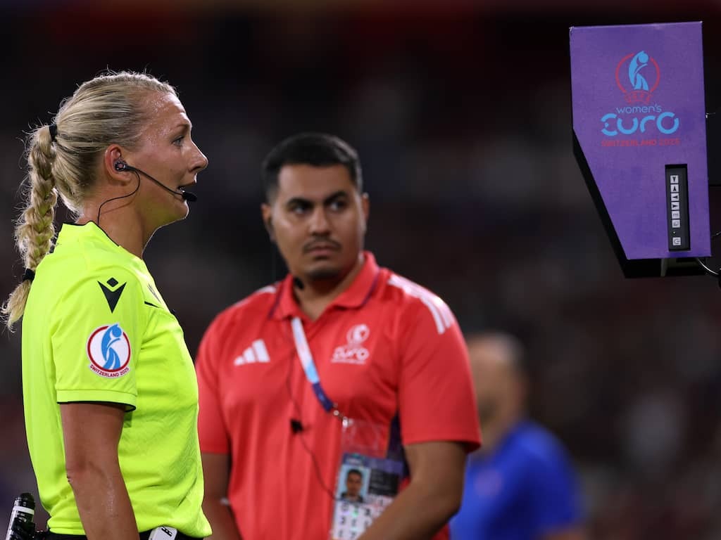 While Hendrich walks to the dressing room in disbelief, Geyoro shoots. After a remarkable red card, France takes the lead in an already chaotic last quarter-final.