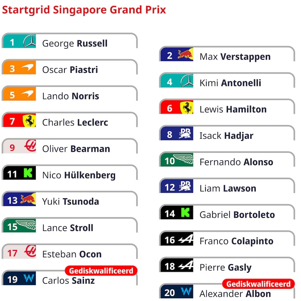 The Starting Grid for the Singapore Grand Prix.