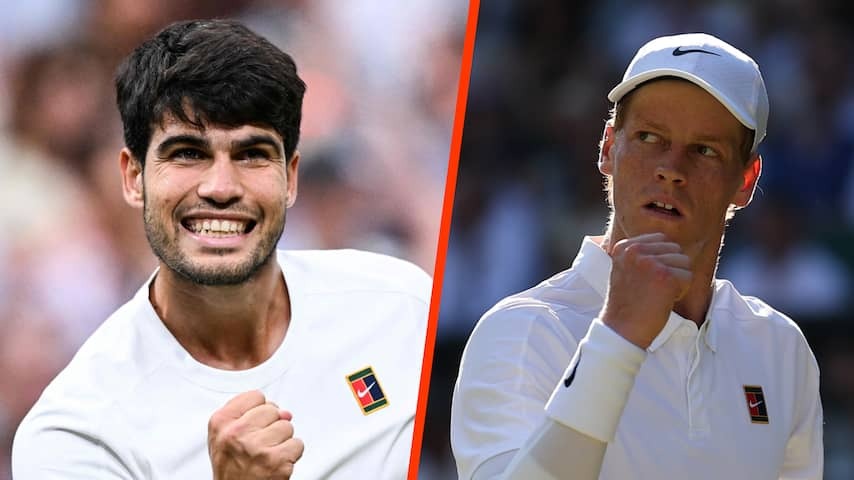 Jannik Sinner and Carlos Alcaraz are not giving each other an inch in the opening phase of this Wimbledon final. Sinner also makes no mistake in his second service game. The score in London is level again. When will there be a break?