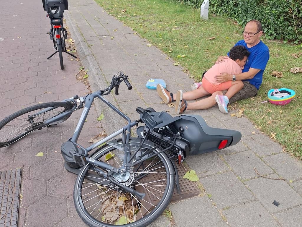 “They don’t pay attention, drove fast and were mainly busy with each other,” says Ton. Things go wrong in a bend. The scooter and fatbike hook together and the boys lose control. There is still braking, but the Fatbike touches Ton and his daughter’s bike, which means they fall hard. Sophia shoots from her child’s seat. “Fortunately she had a helmet on.”