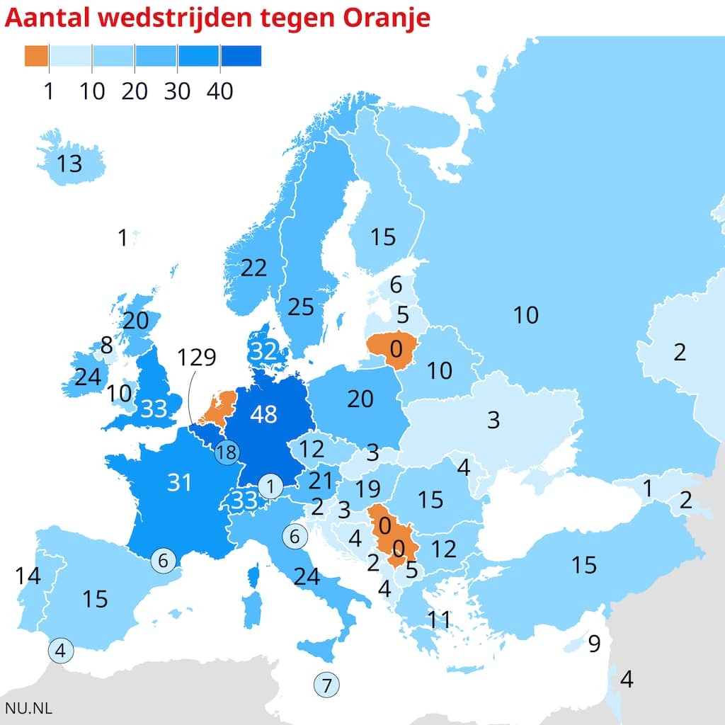 Lithuania-Netherlands Will Be the 877TH Match of the Dutch National Team, which Played its First International Match in 1905. Belgium was by far the most frequent opponent: 129 Times in Total. (West) Germany (48 Times) is second on the list. Whether the non-European Countries, Brazil (13) was the most frequent opponent or orange.