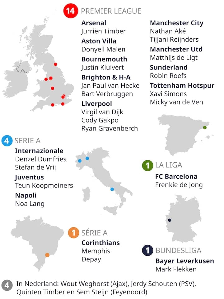 Among Others, Virgil van Dijk, Gakpo and Nathan Aké Have Been Playing in England for Years. And this Summer, Players Such As Xavi Simons (Tottenham Hotspur), Jeremie Frimpong (Liverpool), Tijjani Reijnders (Manchester City) and Lutsharel Geertruida (Sunderland) also Moved to the best competition in The World.