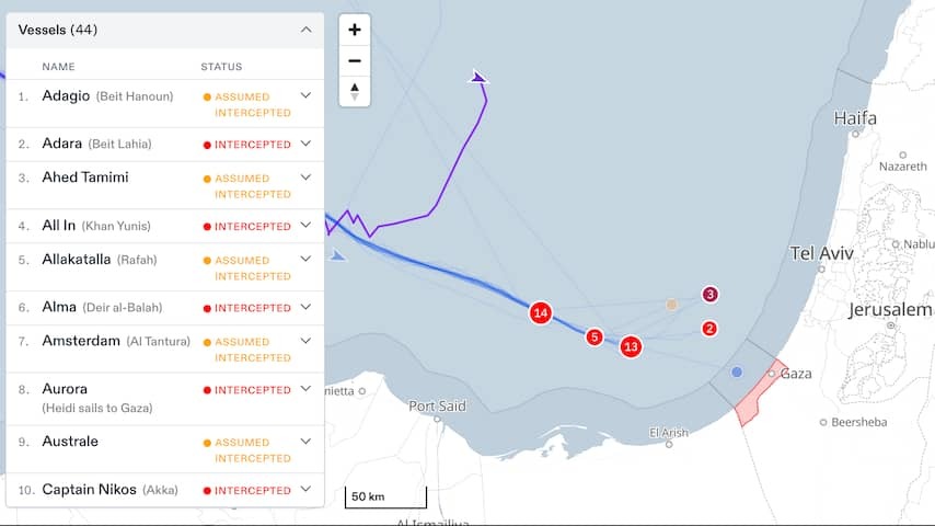 After a Journey of Approximately One Month, The Fleet Approached The Waters Off The Coast of Gaza This Week. On Wednesday, Israeli Naval Vessels Intercepted the Ships a Few boxes miles from the Gazan Coast. Passengers, Including Dutch Activists, Were Detained. None of the Ships Reached the Gaza Strip.